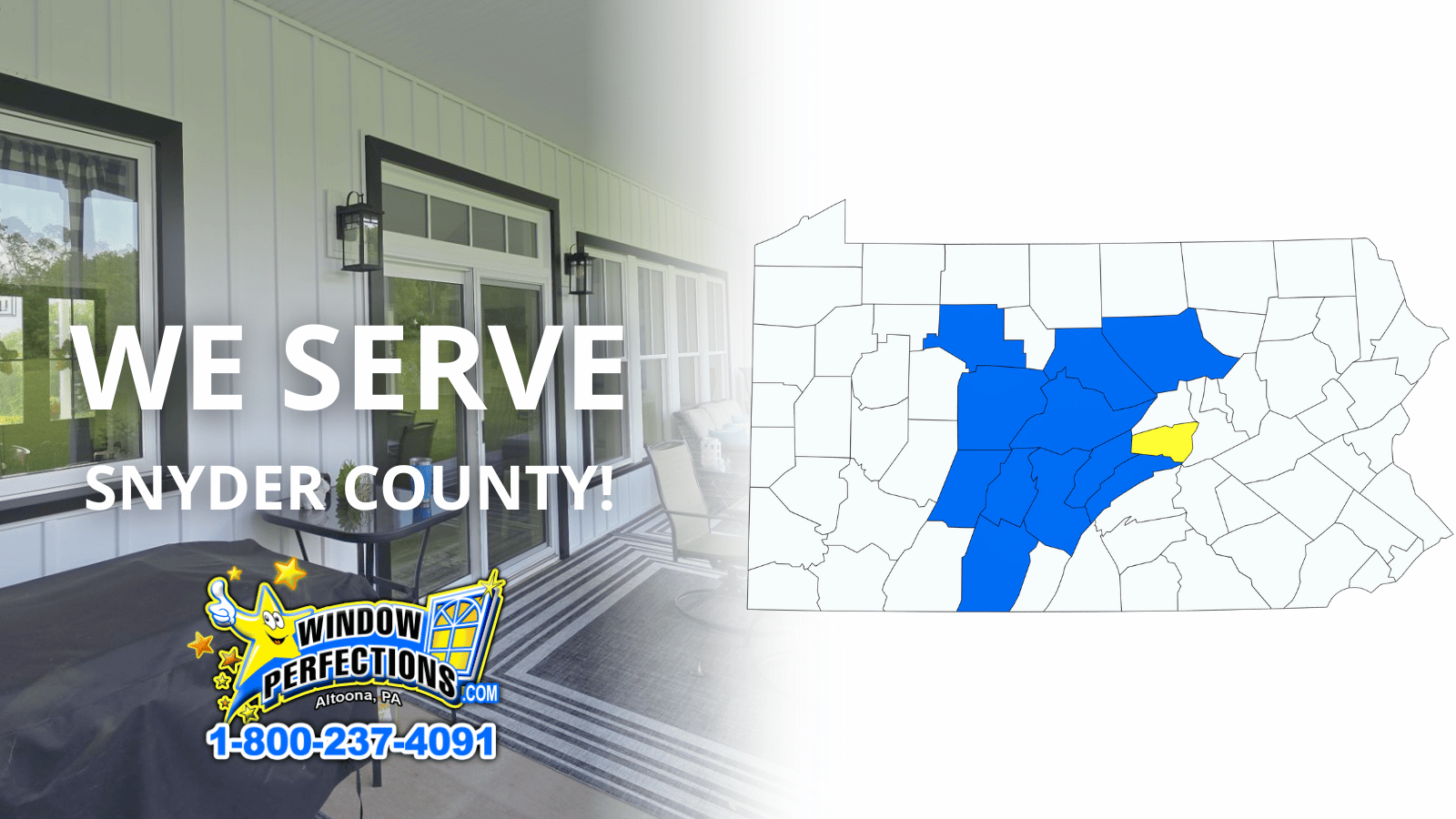 When homeowners and business owners in Snyder County need dependable window solutions, they turn to Window Perfections. Based in Altoona and proudly serving Central Pennsylvania, we bring expert window installation, replacement, and repair services to areas like Selinsgrove, Middleburg, Shamokin Dam, and beyond.